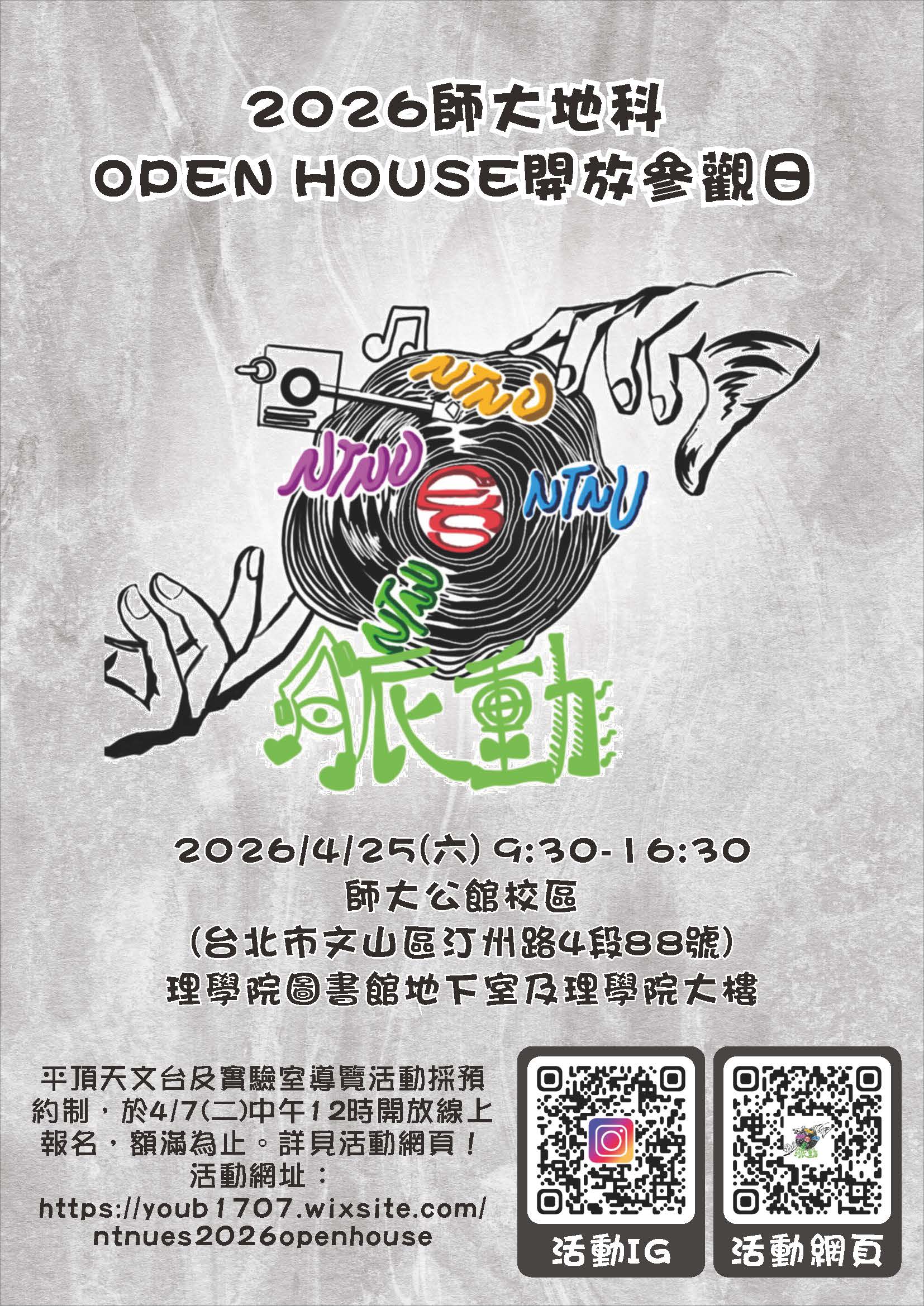 活動網頁:https://youb1707.wixsite.com/ntnues2026openhouse(詳細活動內容及報名方式請參閱活動網頁) |