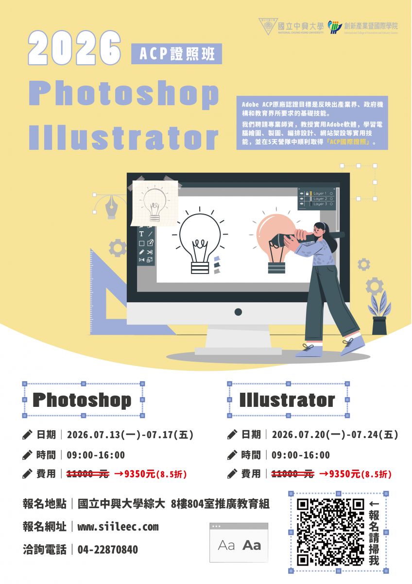 本校同步推出多項暑期熱門課程與證照輔導,包括「Python程式系列」、「人工智慧工程素養認證輔導」、「ACP國際證照-Photoshop與Illustrator考照班」、「SSE色彩學證照輔導」及「CCS生成式AI基礎能力認證班」等,內容結合理論與實作,適合國高中生探索興趣並強化專業能力。 |